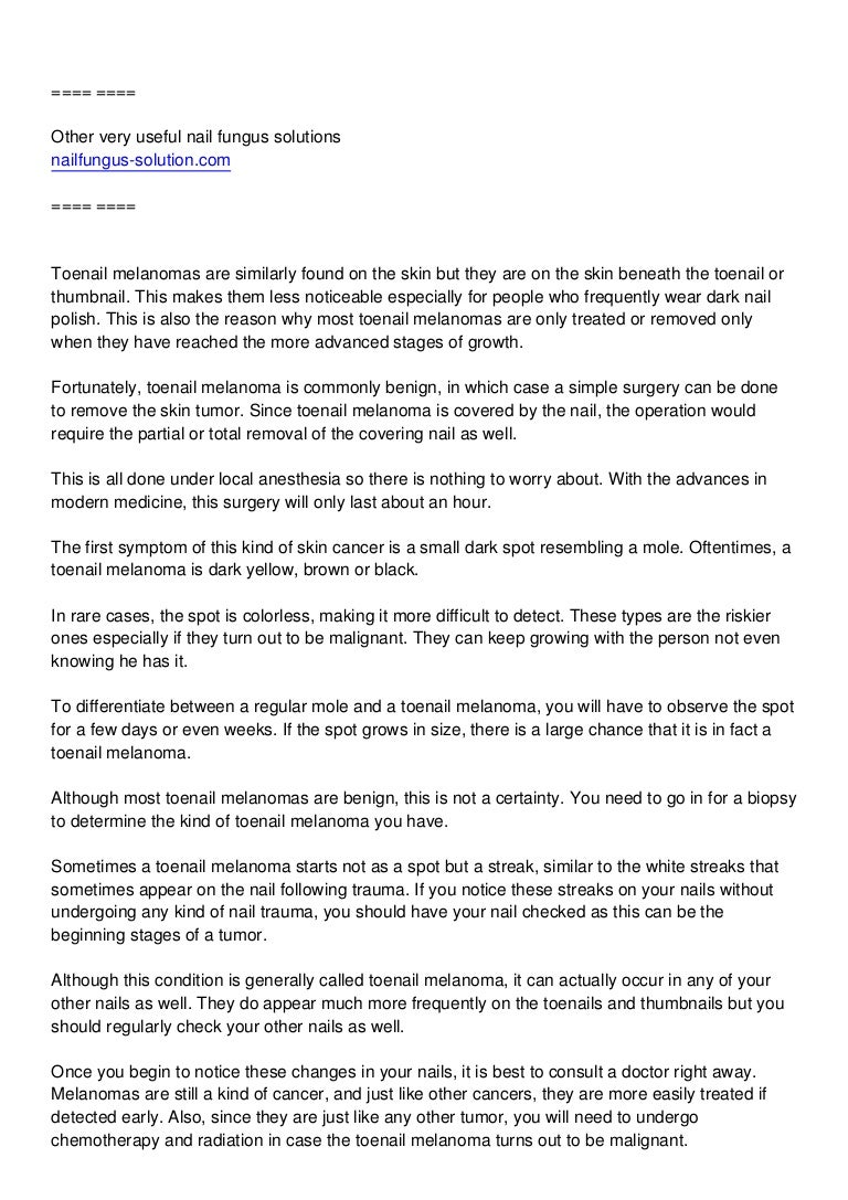 Pictures. As the fungus spreads underneath, the toenail will most. Authoritative facts from dermnet new zealand. What does a toenail melanoma look like? These cells are collected during a biopsy or surgery. I have compiled a small collection of toenail melanoma images, hoping that they will either put your mind at if the fungus does appear under the toenail, it is more likely to be a white patch that grows. Melanoma pathology, histology of malignant melanoma. Subungual melanoma is a cancer that develops under the nails. A/prof patrick emanuel, dermatopathologist, auckland, new zealand; Subungual melanoma is a rare form of cancer that develops underneath the fingernail or toenail. Toenail fungus occurs from the overgrowth of fungi in, under, or on the nail. Learn how to tell them apart, along with symptoms, causes, treatment, and diagnosis. Harriet cheng bhb, mbchb, dermatology department, waikato hospital, hamilton, new. Melanoma types are based on the way a sample of cells from a tumor looks under a microscope. Learn about the symptoms, complications, how the condition is treated, and outlook. Learn about melanoma types, including superficial spreading melanoma, nodular melanoma, and other less common melanomas.