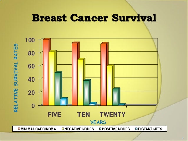 Survival rates by. The cumulative risk and annual rates of distant recurrence and death from breast cancer in each 5 year period from year 0 to year 20 subdivided according to nodal status at the time of diagnosis. The invasive 15 year breast cancer relative survival rate is 80 80 out of 100 women are.