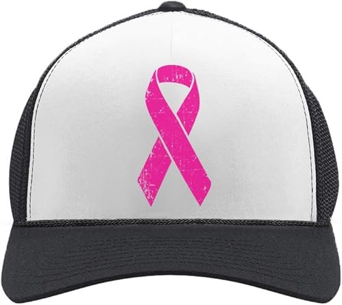 Tstars Breast Cancer Awareness Hat Distressed Pink Ribbon Trucker Hat Mesh Cap One Size Black White At Amazon Men S Clothing Store