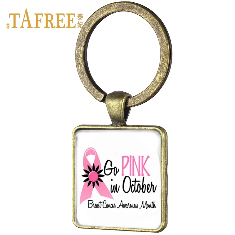 Tafree Breast Cancer Awareness Month Keychain Glass Cabochon Pink Ribbon Key Ring Glass Dome Women Key Chains Jewelry Cc46 Women Key Chain Key Chainkey Ring Aliexpress