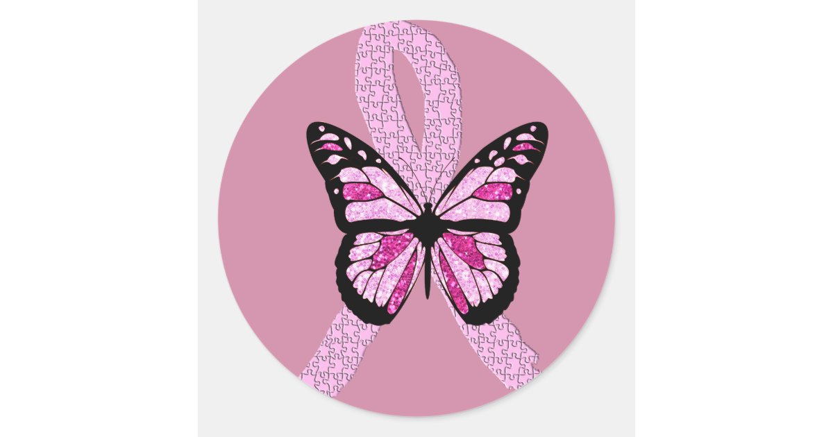 Pink Breast Cancer Awareness Butterfly Ribbon Classic Round Sticker Zazzle Com