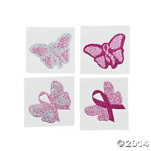 2 Dozen 24 Pink Ribbon Glitter Butterfly Tattoos Breast Cancer Awareness Event Giveaways Amazon In Beauty