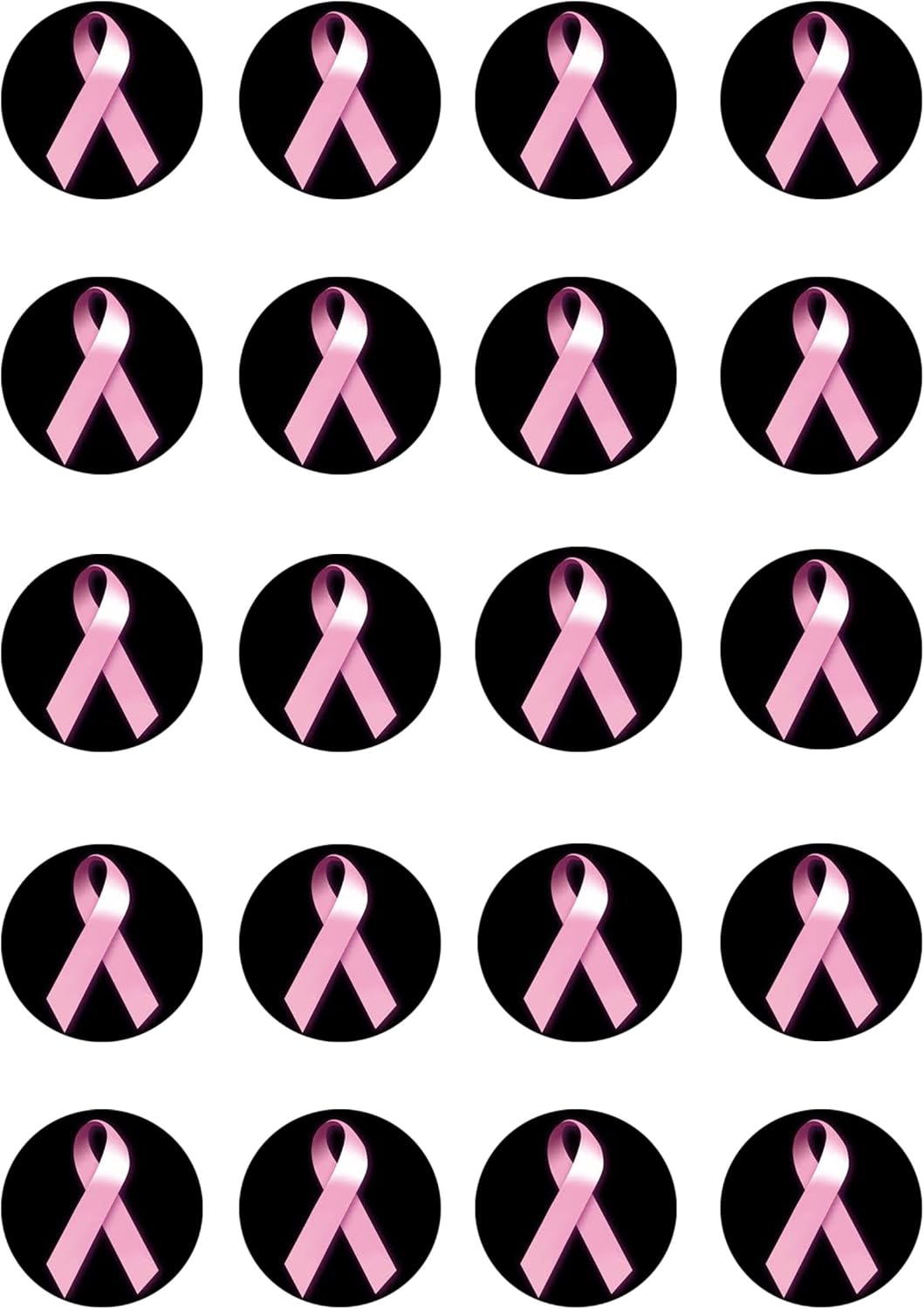 20 Pre Cut Pink Ribbon Round Cup Cake Toppers For Breast Cancer Awareness Amazon Co Uk Kitchen Home