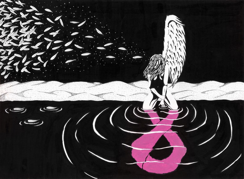 One Winged Angel Breast Cancer Awareness Ink Drawing Framed Original Painting Art By Rufus Royster