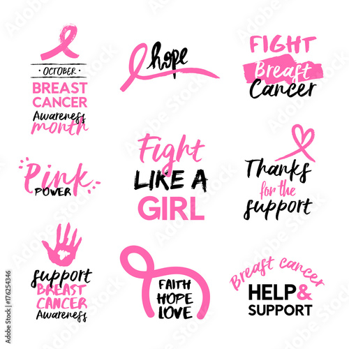 Breast Cancer Awareness Pink Hand Drawn Quote Set Stock
