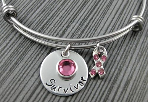 Amazon Com Cancer Survivor Jewelry Breast Cancer Charm Bangle Wire Bracelet Survivor Gift Adjustable Charm Bangle Handmade