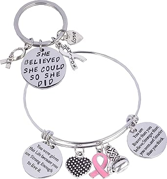 Breast Cancer Survivor Gifts For Women Breast Cancer Pink Ribbon Keychain Breast Cancer Survivor Bracelet Breast Ribbon Bracelet She Believed She Could So She Did Keychain For Women Cancer Awarenes At Amazon