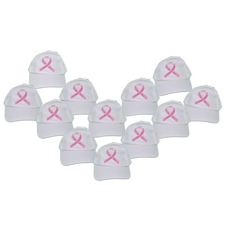 White Pink Ribbon Embroidered Breast Cancer Awareness Baseball Hat Lot Of 12 Walmart Com