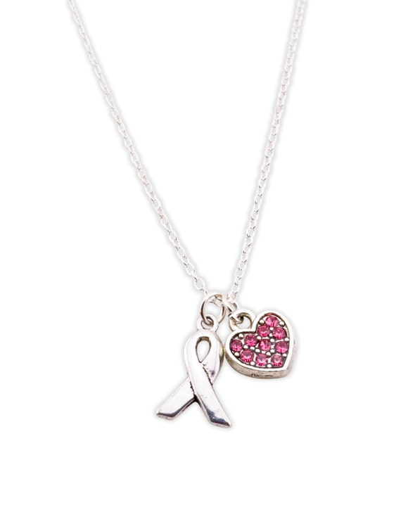 Breast Cancer Necklace Breast Cancer Charm Necklace Ribbon Necklace Breast Cancer Ribbon Necklace Charm Necklace Silver Charm Necklace
