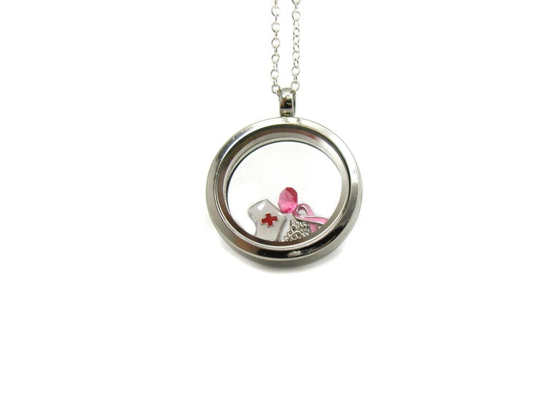 Breast Cancer Charm Locket Necklace Memory Locket Floating Charm Necklace Memory Locket Necklace Floating Locket Breast Cancer Necklace
