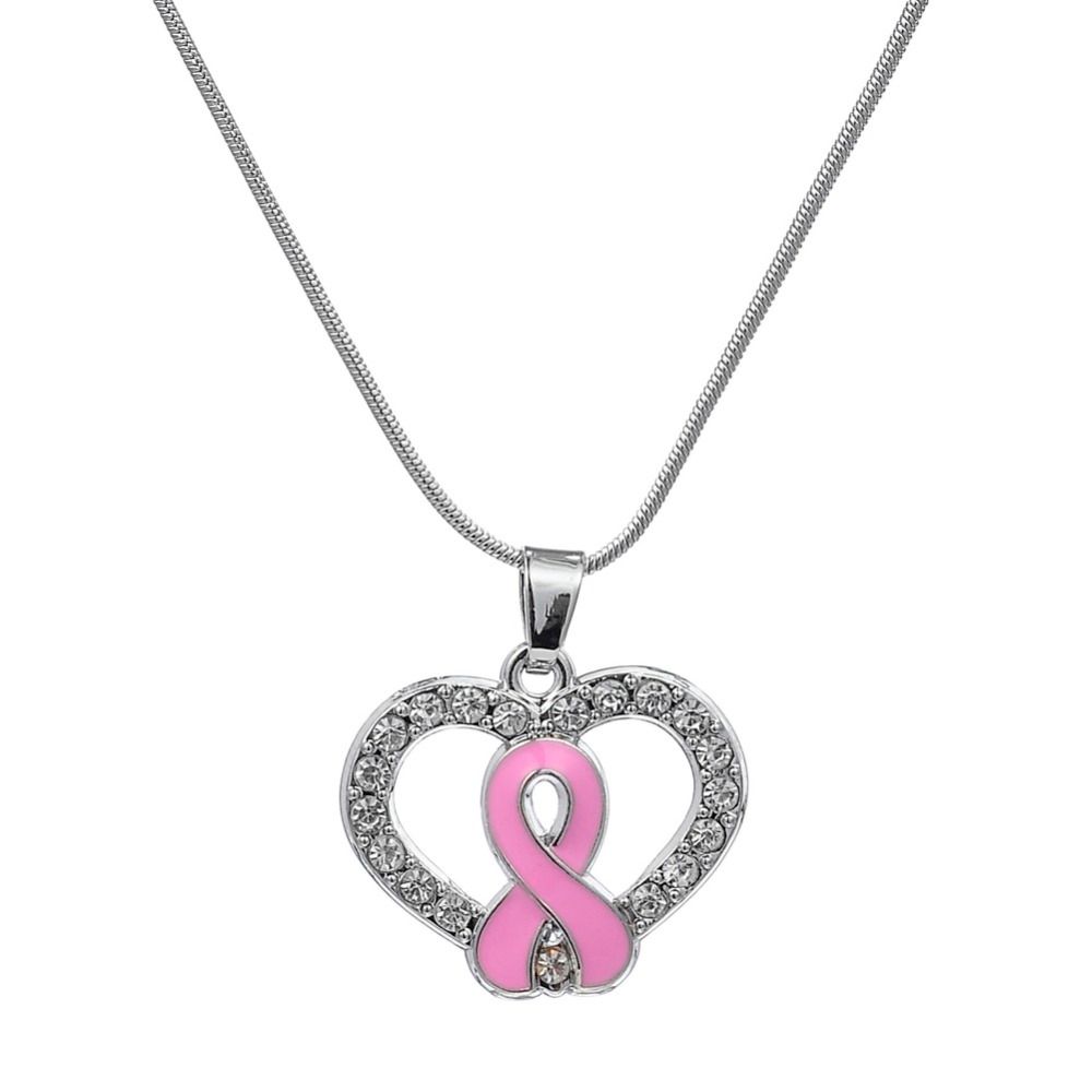 Details About Breast Cancer Awareness Pink Ribbon Charm Necklace Jewelry Gift For Women Her