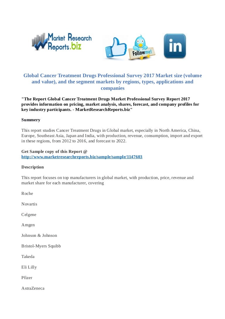 Global Cancer Treatment Drugs Professional Survey 2017 Market Size V