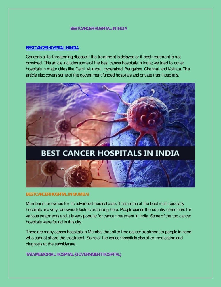 The good news is that if cancer is detected in its early stages it can be treated and an individual can lead a healthy life. Oncology doctors in india. The cost of treatment is variable in india.