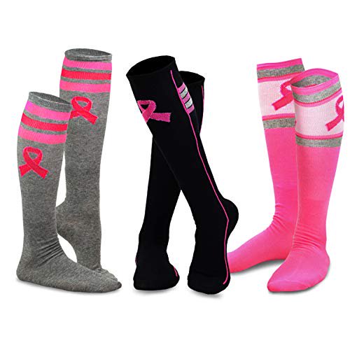 Breast Cancer Awareness Knee High Compression Socks 3 Pack