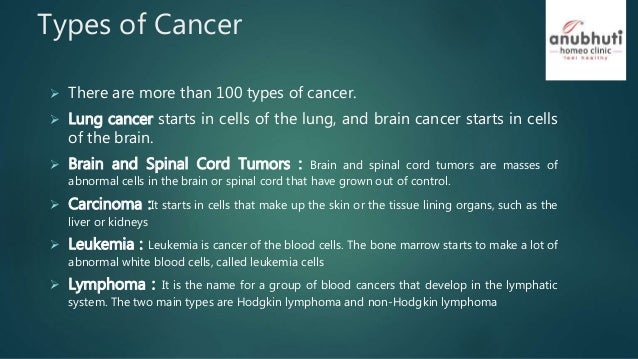 Cancer Wikipedia. Cancer.net offers individualized guides for more than 120 types of cancer and related hereditary syndromes. If you don't see your type listed, it might be covered under a different name. The following is a list of cancer types. How is each cancer type named? Use the search icon in the menu at the top of the page. Not all tumors or lumps are cancerous. Cancer is named after the part of the body where it originated. Cancer is a group of diseases that involve abnormal increases in the number of cells, with the potential to invade or spread to other parts of the body. A to z list of cancers. Ctca has been fighting advanced and complex types of cancer for decades. Search for the cancer type you want to find out about. Select a type of cancer to learn about treatment, causes and prevention, screening, and the latest research. Learn more about the types of cancer we treat, including symptoms and risk factors. When cancer spreads, it keeps this same name. Choose a cancer type from the list below to get detailed information.
