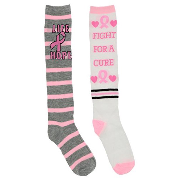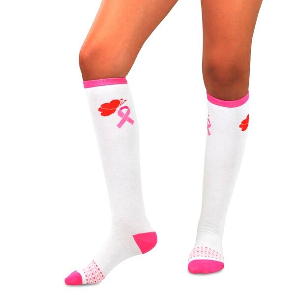 . We have an extensive assortment of breast cancer awareness ribbon socks. Sox box neon pink kneehigh socks.